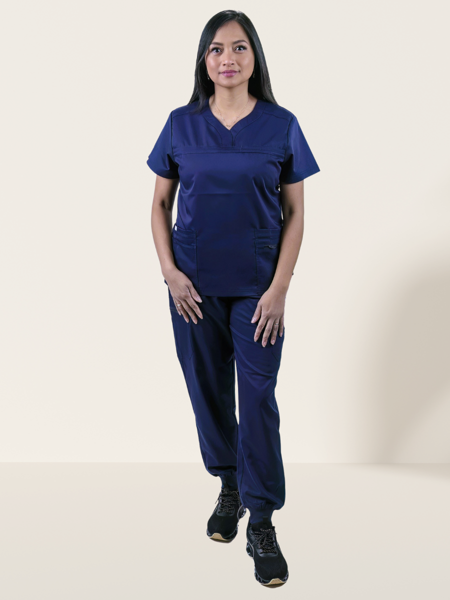 - Practical Design: The short-sleeved scrubs tops features modern V-neck and 4 patch pockets. The Yoga jogger pants feature adjustable stretch drawstring and 6 cargo pockets. Our scrub sets for women strikes a balance between storage and tailored fit.