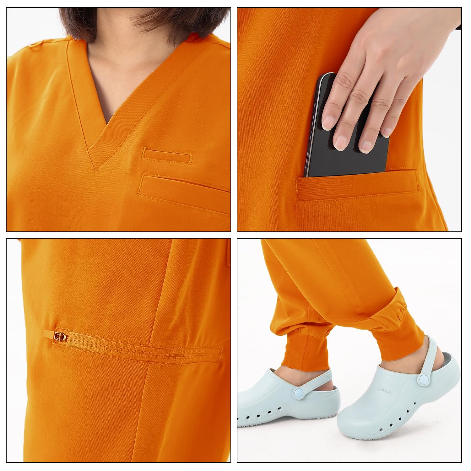 Practical Design: The short-sleeved scrubs tops features modern V-neck and 4 patch pockets. The Yoga jogger pants feature adjustable stretch drawstring and 6 cargo pockets. Our scrub sets for women strikes a balance between storage and tailored fit.